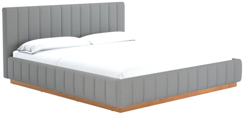 Designed by Mermelada Estudio, cushy channels of lush upholstery line the length of this finely tailored bed. Plinth oak wood base keeps a minimal profile finished in a subtle whitewash. A true statement piece. Learn about Mermelada Estudio on our blog. CB2 exclusive.