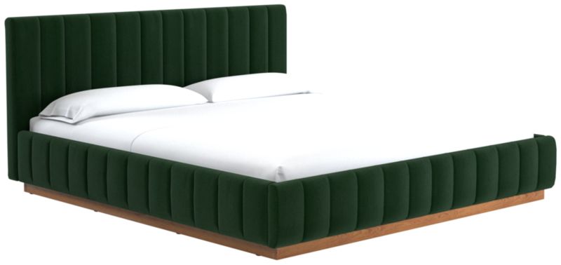 Designed by Mermelada Estudio, cushy channels of lush upholstery line the length of this finely tailored bed. Plinth oak wood base keeps a minimal profile finished in a subtle whitewash. A true statement piece. Learn about Mermelada Estudio on our blog. CB2 exclusive.