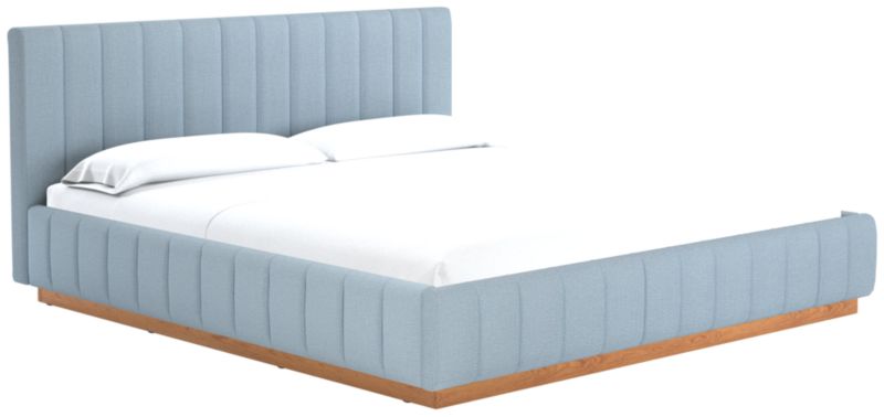Designed by Mermelada Estudio, cushy channels of lush upholstery line the length of this finely tailored bed. Plinth oak wood base keeps a minimal profile finished in a subtle whitewash. A true statement piece. Learn about Mermelada Estudio on our blog. CB2 exclusive.