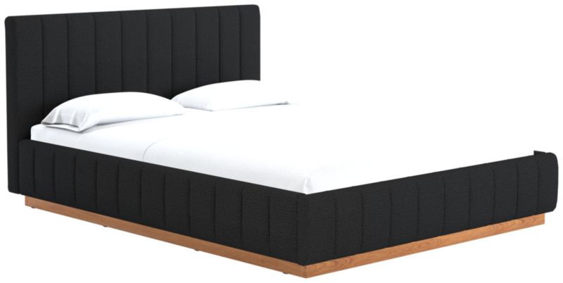 Designed by Mermelada Estudio, cushy channels of lush upholstery line the length of this finely tailored bed. Plinth oak wood base keeps a minimal profile finished in a subtle whitewash. A true statement piece. Learn about Mermelada Estudio on our blog. CB2 exclusive.