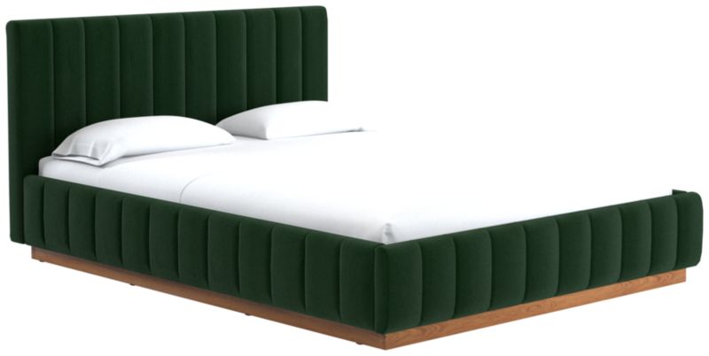 Designed by Mermelada Estudio, cushy channels of lush upholstery line the length of this finely tailored bed. Plinth oak wood base keeps a minimal profile finished in a subtle whitewash. A true statement piece. Learn about Mermelada Estudio on our blog. CB2 exclusive.