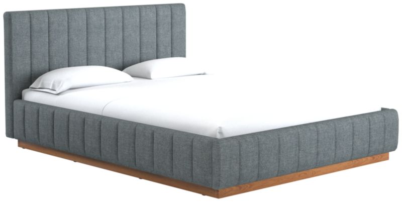 Designed by Mermelada Estudio, cushy channels of lush upholstery line the length of this finely tailored bed. Plinth oak wood base keeps a minimal profile finished in a subtle whitewash. A true statement piece. Learn about Mermelada Estudio on our blog. CB2 exclusive.