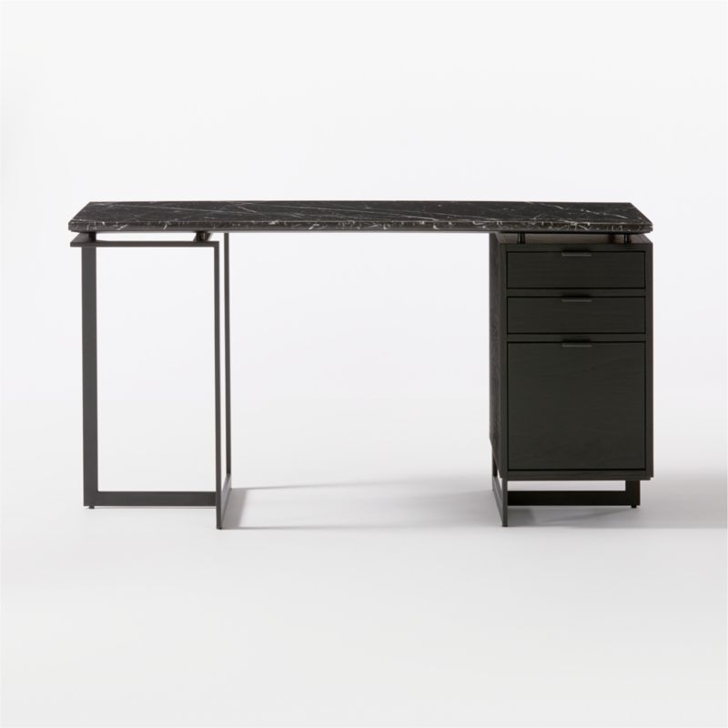 View CartFullerton 3-Drawer Black Metal and Oak Wood Desk with Black Marble Top