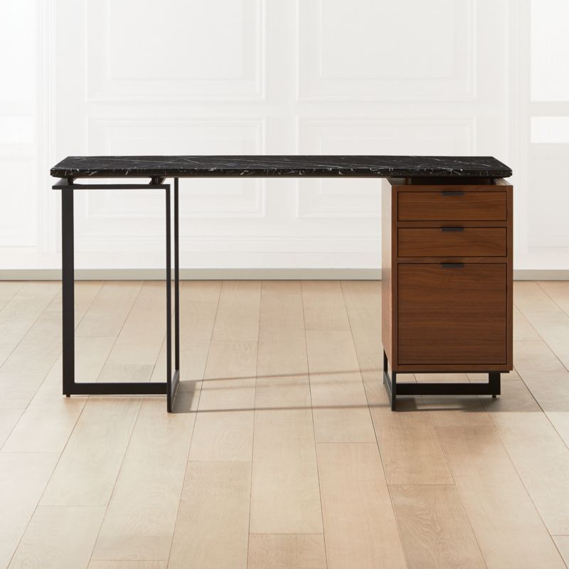 View CartFullerton 3-Drawer Metal and Walnut Wood Desk with Black Marble Top