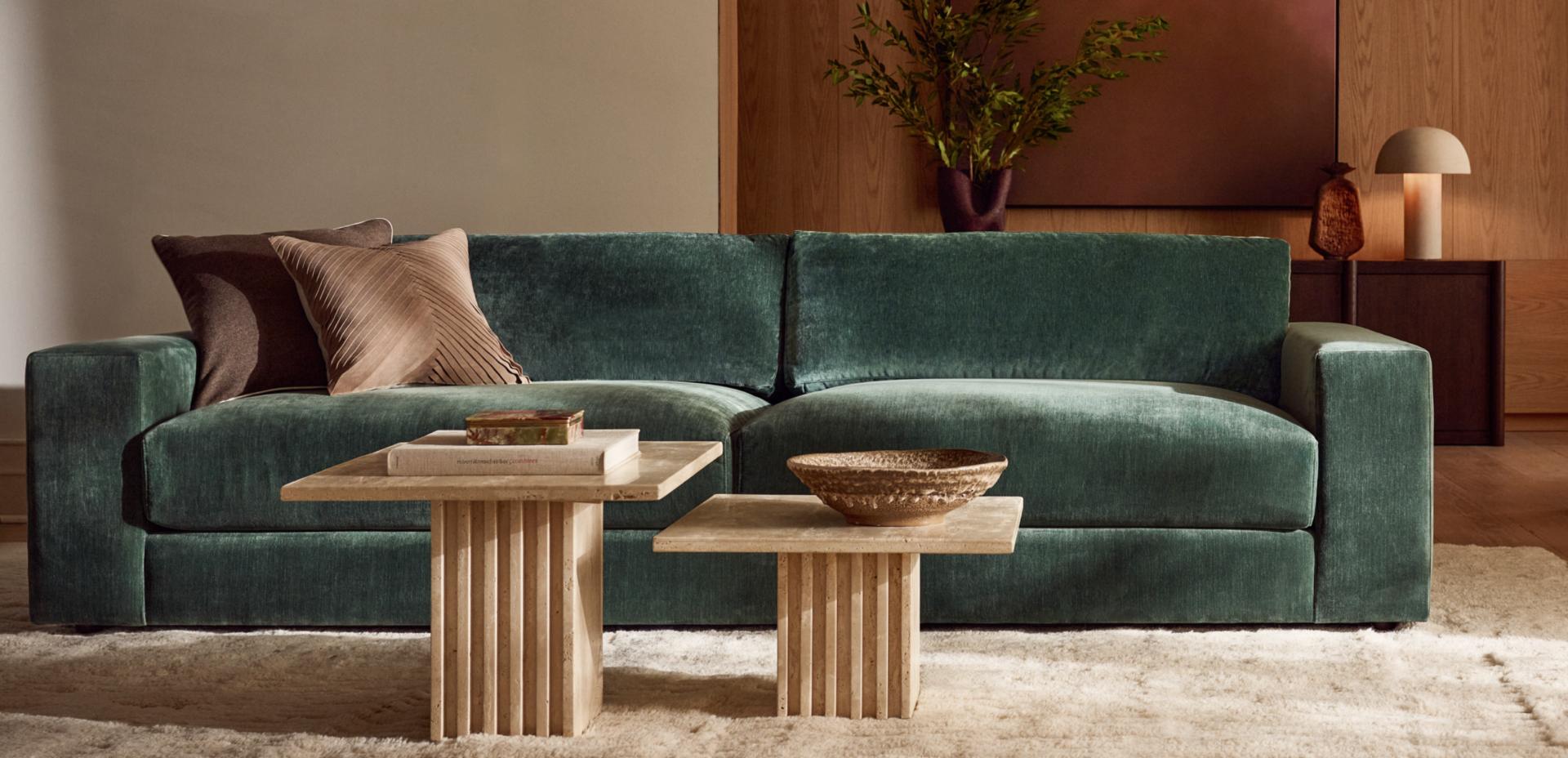 Plush seating meets modern aesthetic. Frame is crafted of FSC®-certified wood and assembled in North Carolina.