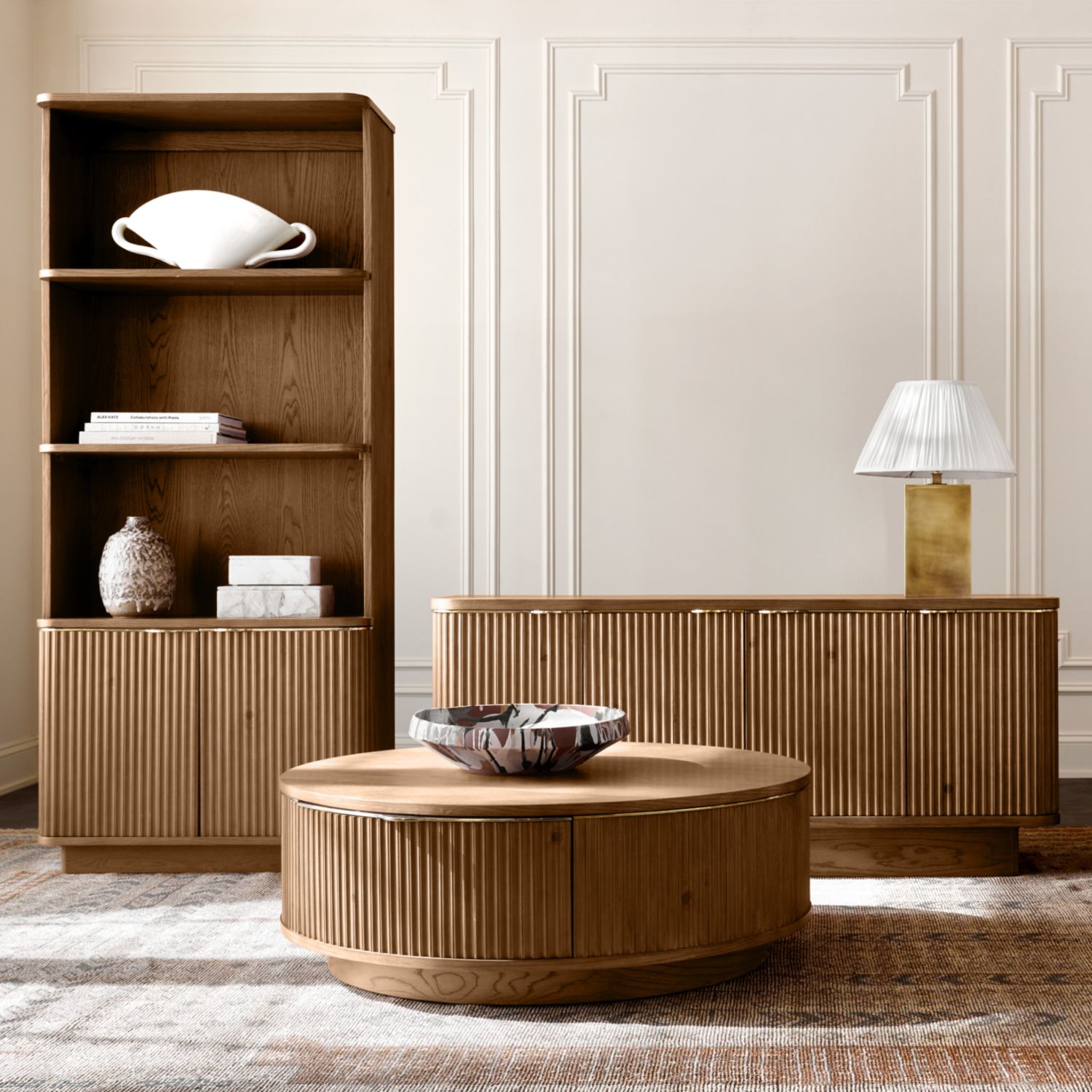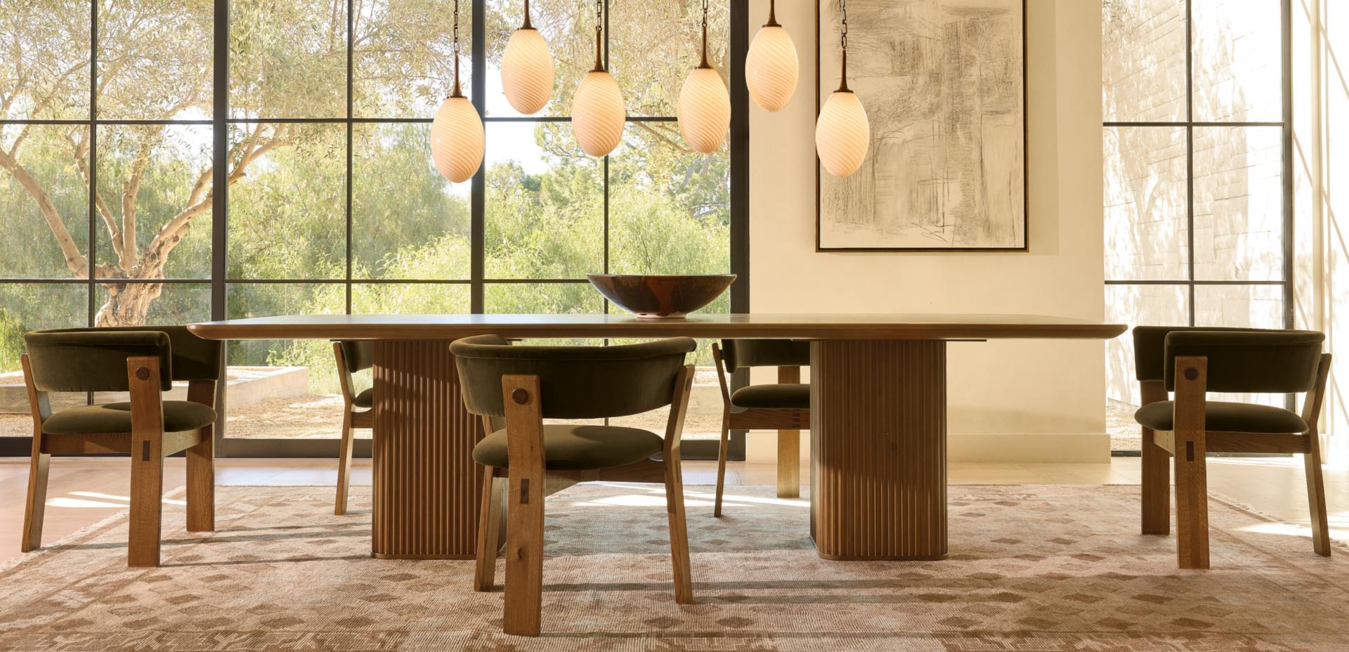 Designed in Portugal, the Davison Collection’s carved fluting brings texture and movement to architectural form. Solid unlacquered brass details will patina beautifully over time.