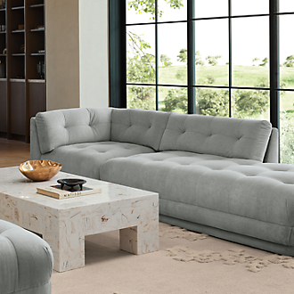 Live it up. Sit down and settle in with modern living room furniture. For grand glam, set up contemporary velvet sofas flanked by marble side tables. Play with patterns by layering an area rug or two on the floor, and keep an acrylic coffee table on top of it to let the textile stay in the spotlight. Is your taste more edgy than opulent? Add urban vibe with a sleek hi-gloss media console or sideboard. Then, bring in some industrial elements for a moody feel—concrete end tables or metal frame accent chairs play up the look. Even in small-scale lofts and apartments, modern living room furniture delivers major style: loveseats keep you comfy, while storage furniture maximizes floor space. If you're working with more room, there are plenty of ways to furnish it: think sprawling sectionals and long coffee tables.
