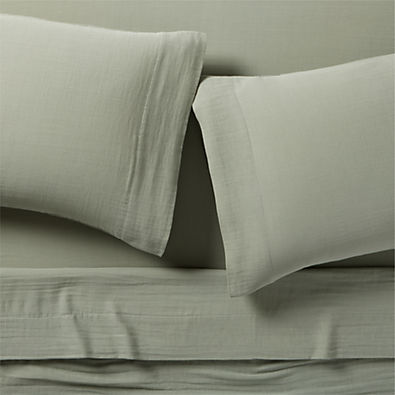 See in-stock & shipping info on Crate Loading...Crate & BarrelSKU 374956Supersoft Organic Cotton Gauze Shadow Sage Green King Bed Sheet Set$219.950 of 1 purchasedBuy on Crate