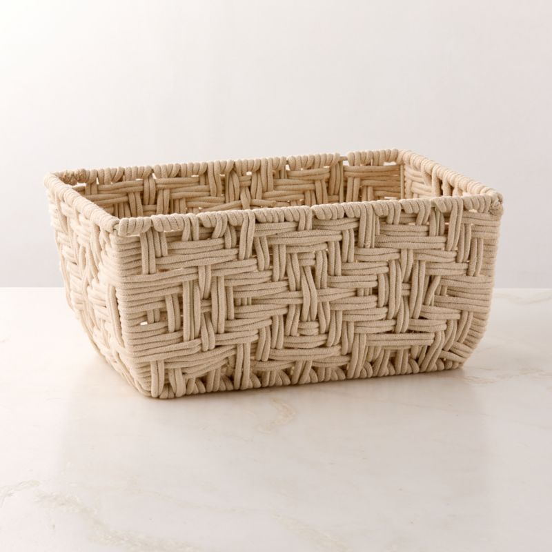 In stock and ready to ship. Loading...CB2SKU 386861Rowen Handwoven Rectangle White Cotton Storage Basket SmallSale $45.00 reg. $69.95Free Shipping Eligible0 of 1 purchasedAdd to Cart