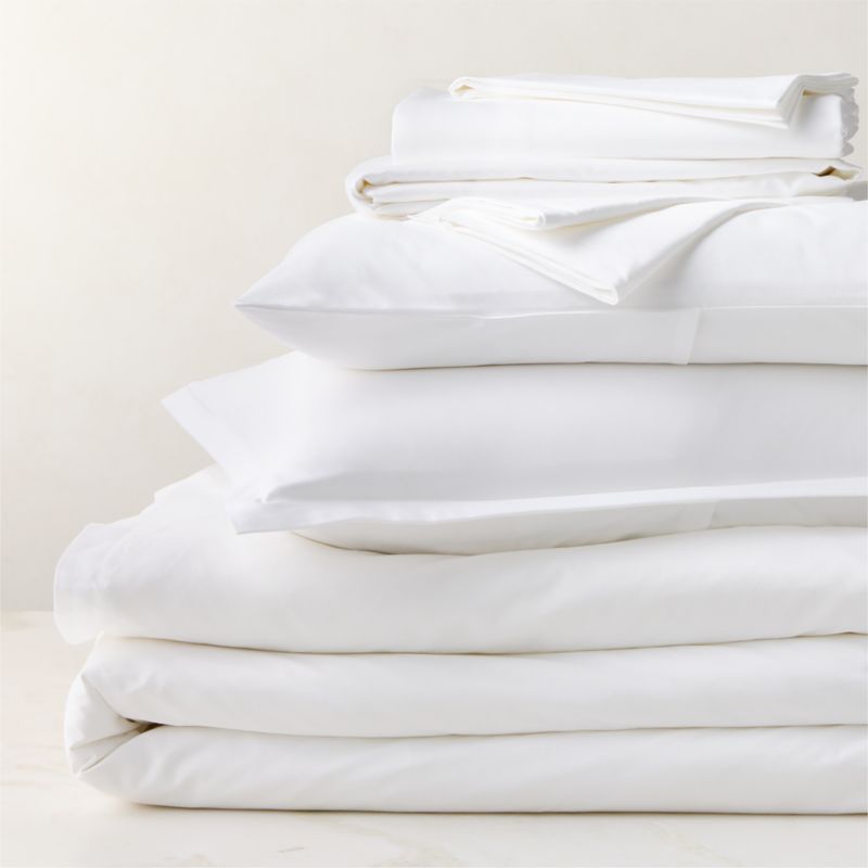 In stock and ready to ship. Loading...CB2SKU 465373Premier White Organic Cotton Sateen 600 Thread Count King Bedding SetSet Savings $530.00 open stock $557.95Free Shipping Eligible0 of 1 purchasedAdd to Cart