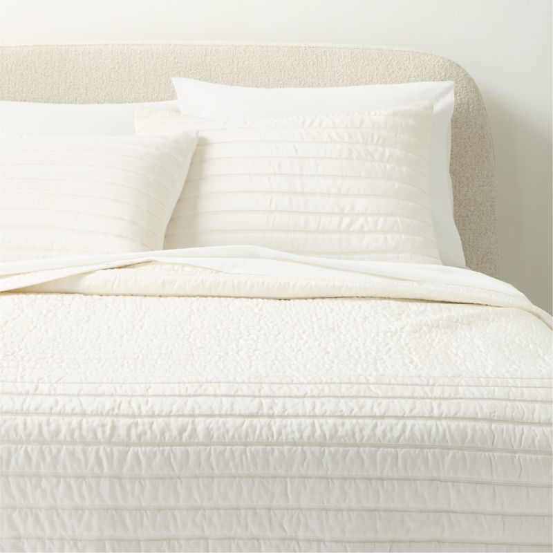 In stock and ready to ship. Loading...CB2SKU 466814Saracino Silk White King QuiltClearance $269.97 reg. $599.00Ships free0 of 1 purchasedAdd to Cart