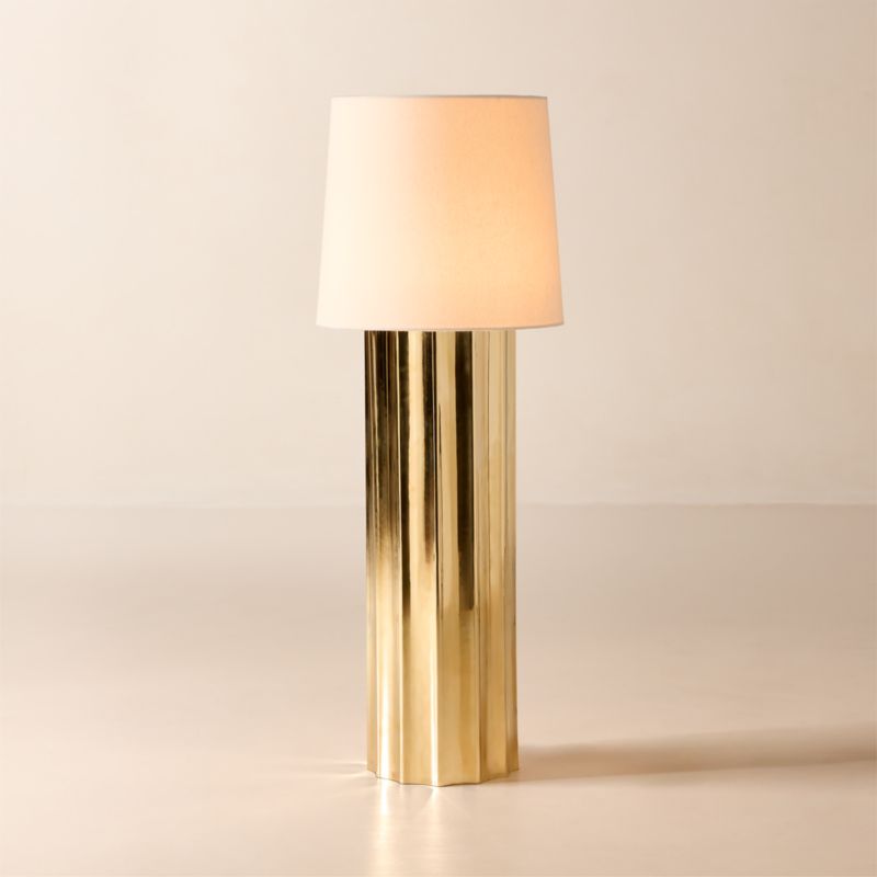 In stock and ready for delivery to ZIP code 78665 Loading...CB2SKU 436953Baz Oversized Scalloped Unlacquered Brass Floor Lamp with Cotton ShadeClearance $449.97 reg. $899.000 of 1 purchasedAdd to Cart