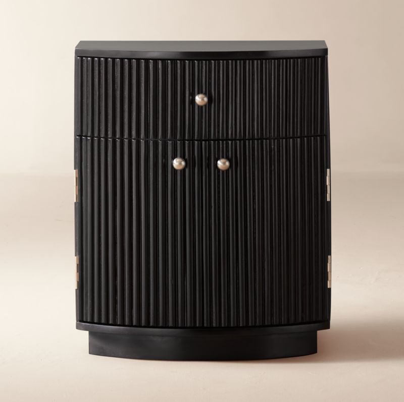 In stock and ready for delivery to ZIP code 91913 Loading...CB2SKU 418734Cameo 20" Fluted Black Wood Nightstand with DrawerSale $509.00 reg. $599.000 of 2 purchasedAdd to Cart