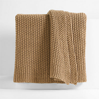 See in-stock & shipping info on Crate Loading...Crate & BarrelSKU 578368Organic Cotton 80"x80" Camel Brown Chunky Hand-Knit Bed Throw Blanket$169.950 of 1 purchasedBuy on Crate