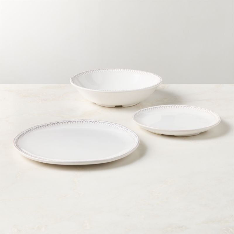 In stock and ready to ship. Loading...CB2SKU 356985Iliana 3-Piece White Stoneware Dinnerware Set with Pasta BowlSale $35.00 reg. $43.95Free Shipping Eligible0 of 1 purchasedAdd to Cart