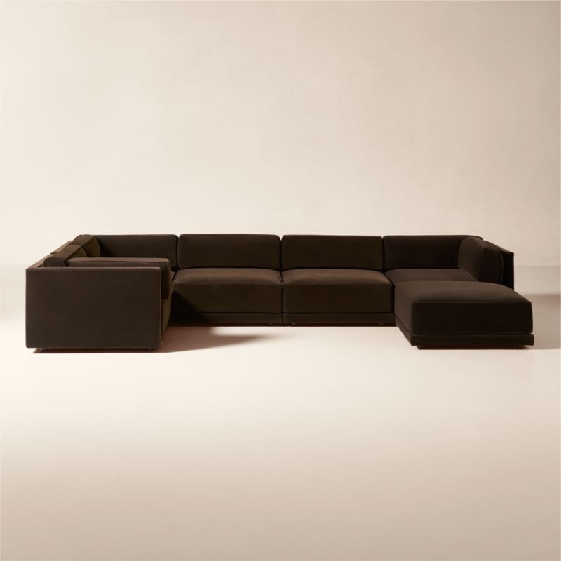 Purchase now and we'll ship when it's available. Estimated in mid April 2026.Loading...CB2SKU 254308Oriole 6-Piece U-Shaped Dark Brown Performance Velvet Modular Sectional Sofa$9,094.000 of 1 purchasedAdd to Cart
