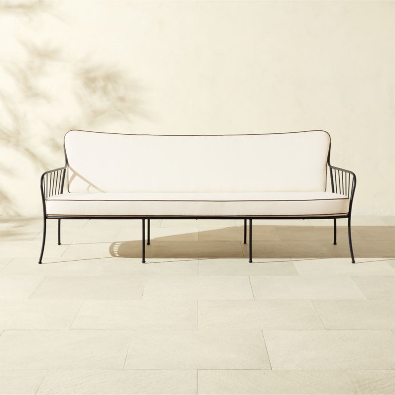 In stock and ready for delivery to ZIP code 95310 Loading...CB2SKU 539877Welling Black Metal Outdoor Sofa with White Cushions$1,499.000 of 1 purchasedAdd to Cart