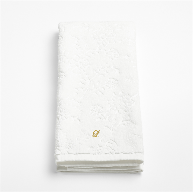See in-stock & shipping info on Crate Loading...Crate & BarrelSKU 381124Personalized Floral Jaquard Organic Cotton Crisp White Hand Towel$39.95includes $15 personalization fee0 of 4 purchasedBuy on Crate