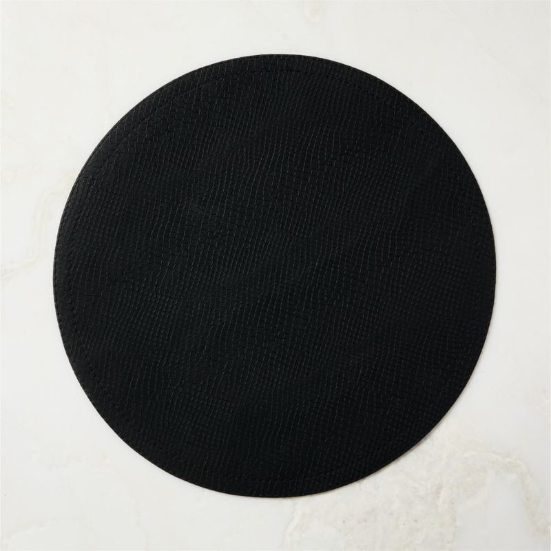 In stock and ready to ship. Loading...CB2SKU 393287Python Black Faux Leather Round Placemat$17.95Ships free0 of 1 purchasedAdd to Cart