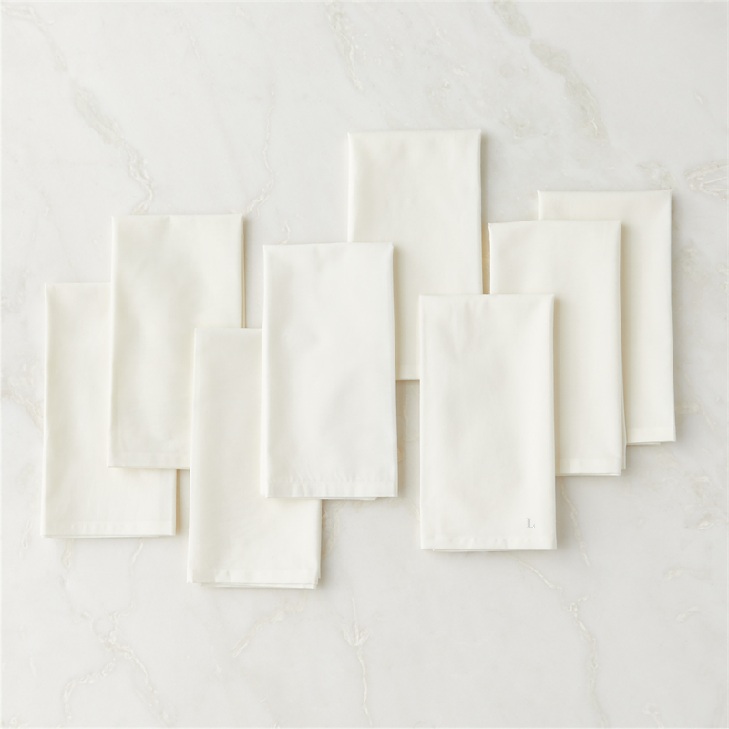In stock and ready to ship. Loading...CB2SKU 516598Personalized Poplin Off-White Cloth Napkins Set of 8Set Savings $54.00 open stock $54.60includes $15 personalization feeShips free0 of 1 purchasedAdd to Cart