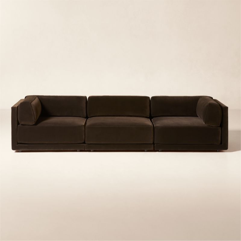 Purchase now and we'll ship when it's available. Estimated in mid April 2026.Loading...CB2SKU 679595Oriole 3-Piece Dark Brown Performance Velvet Modular Sectional Sofa$4,897.00Group Gift0 of 1 purchasedAdd to CartContribute to Group Gift Fund