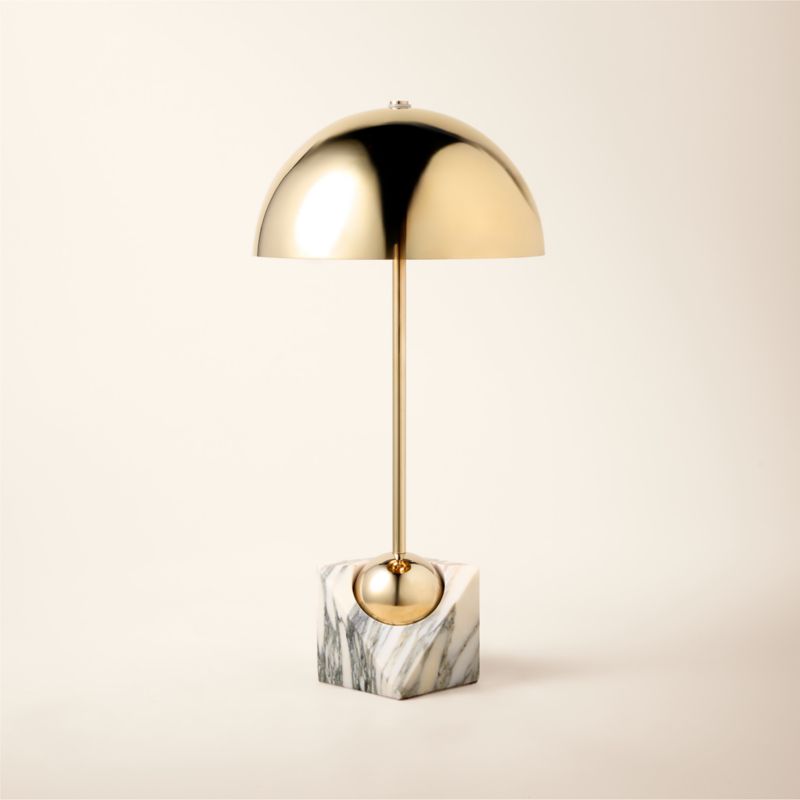Purchase now and we'll ship when it's available. Estimated in mid May 2026.Loading...CB2SKU 102560Venus Champagne Brass Metal Dome Table Lamp with White Marble Base$399.000 of 2 purchasedAdd to Cart