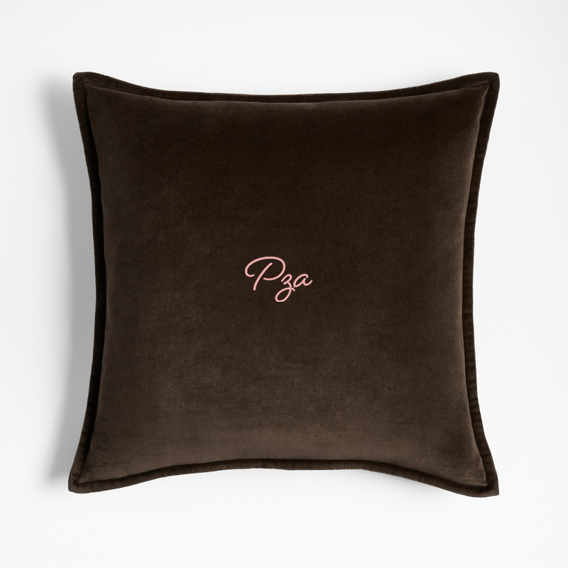 See in-stock & shipping info on Crate Loading...Crate & BarrelSKU 176925Personalized Deep Brown 20"x20" Washed Organic Cotton Velvet Throw Pillow Cover$50.95includes $16 personalization fee0 of 1 purchasedBuy on Crate