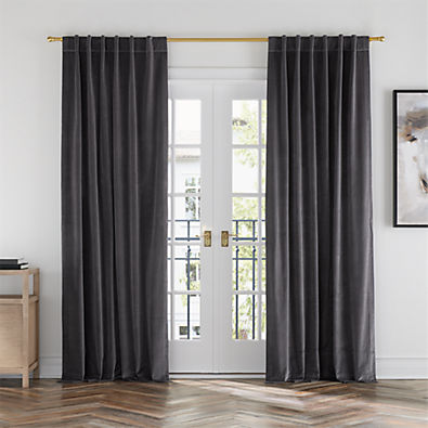 See in-stock & shipping info on Crate Loading...Crate & BarrelSKU 595684Storm Grey Cotton Velvet Window Curtain Panel with Lining 48"x84"Clearance $79.97 reg. $169.950 of 1 purchasedBuy on Crate