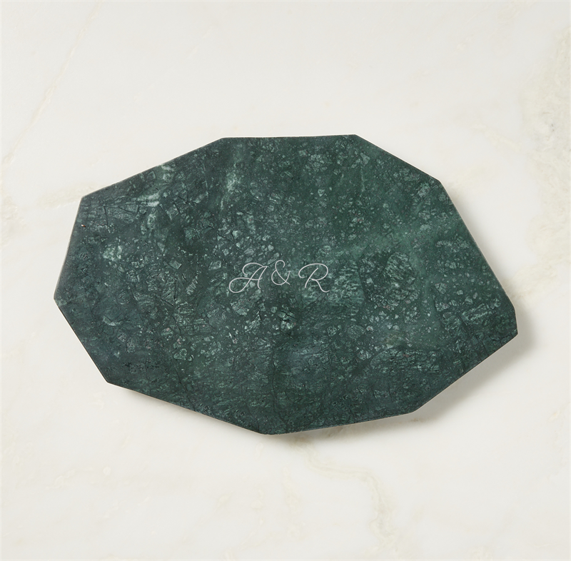 In stock and ready to ship. Loading...CB2SKU 464143Personalized Cliff Green Marble Serving Platter$134.00includes $15 personalization feeFree Shipping Eligible0 of 1 purchasedAdd to Cart