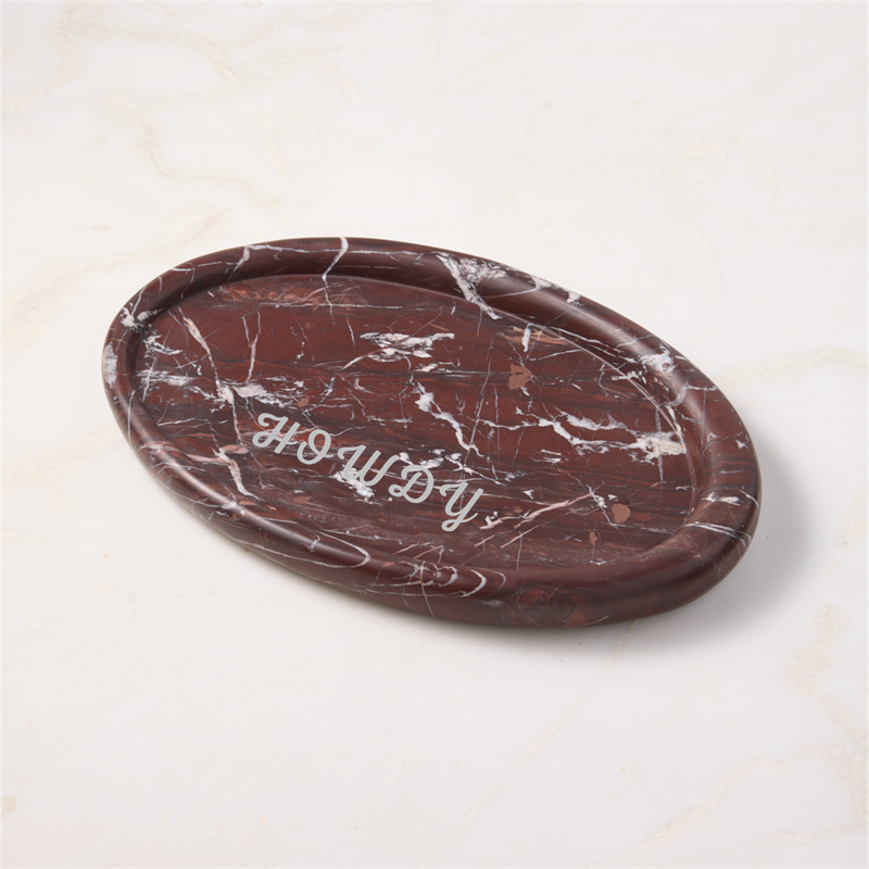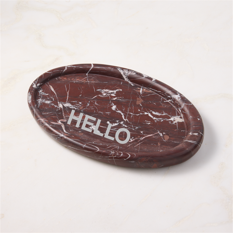 In stock and ready to ship. Loading...CB2SKU 654312Personalized Pave Oval Red Marble Serving Tray$134.00includes $15 personalization feeFree Shipping Eligible0 of 3 purchasedAdd to Cart