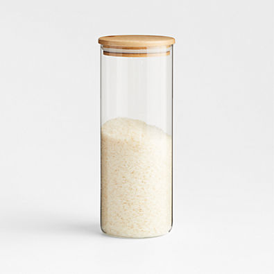 See in-stock & shipping info on Crate Loading...Crate & BarrelSKU 631729Crate & Barrel Large Round Glass Canister with Bamboo Lid$14.950 of 3 purchasedBuy on Crate