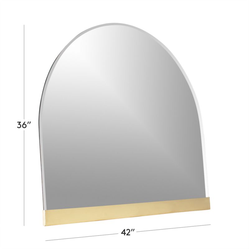 Statement-making mirror adds depth to the room. Arched up top and straight along the bottom, mirror has antiqued brass-finished detailing and beveled edge. Ideal over a mantel, but equally intriguing elsewhere in the home. CB2 exclusive.