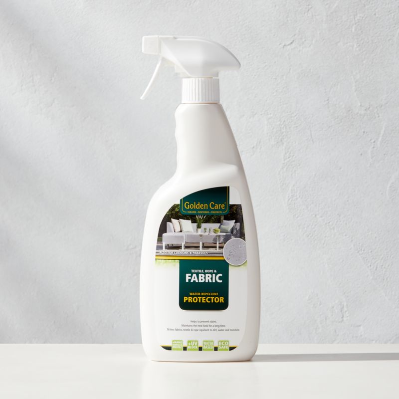 Keep outdoor furniture looking new for longer with Golden Care® fabric protector. The transparent water-based formula helps to prevent stains on outdoor cushions, seating and umbrellas. Before treating with the fabric protector, clean outdoor textiles with Golden Care® fabric cleaner (sold separately).