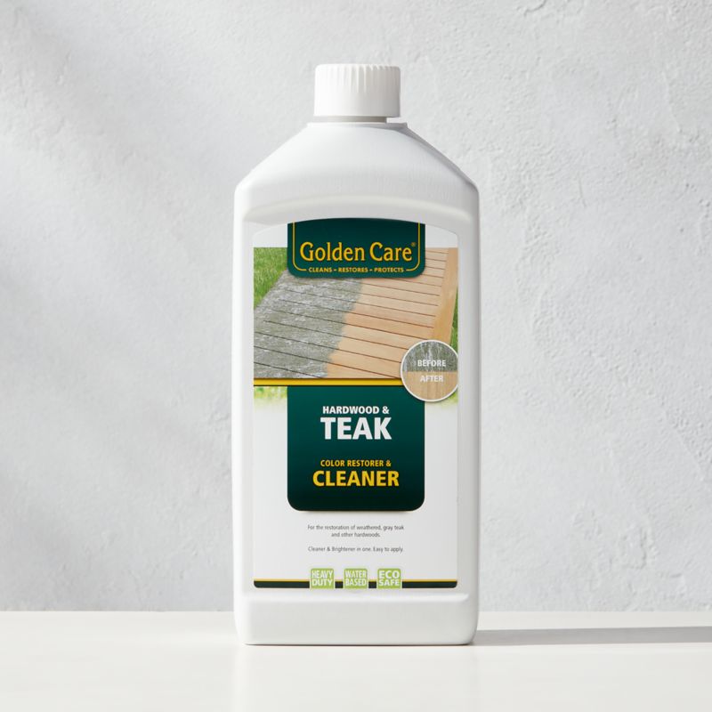 Keep outdoor furniture looking new for longer with Golden Care® teak cleaner. The water-based formula cleans and brightens discolored teak in one simple step to bring the wood back to its original honey-brown color. After cleaning, treat teak with Golden Care® teak protector (sold separately).