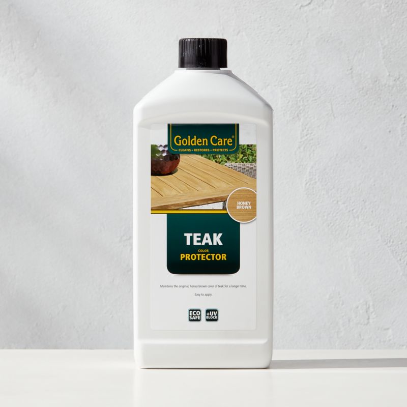 Keep outdoor furniture looking new for longer with Golden Care® teak protector. The non-greasy, water-based formula protects teak's natural honey-brown color while preventing black spots. Before treating with the teak protector, clean outdoor furniture with Golden Care® teak cleaner (sold separately).