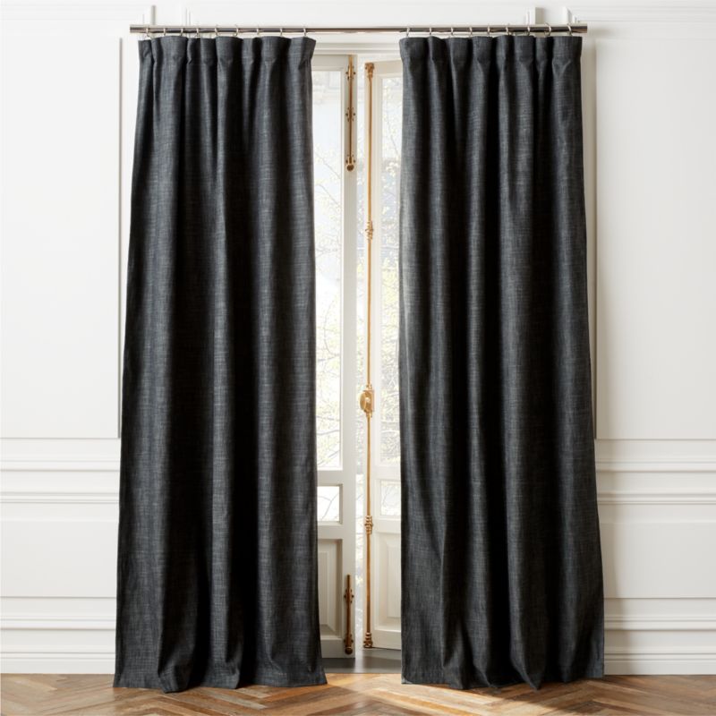 Tonal colors and yarn-dyed fabric create a subtle, yet eye-pleasing textured effect. Cotton-viscose panel filters light while framing windows in style. Hangs beautifully with back tabs, rod pocket or 10 included drapery hooks. CB2 exclusive.