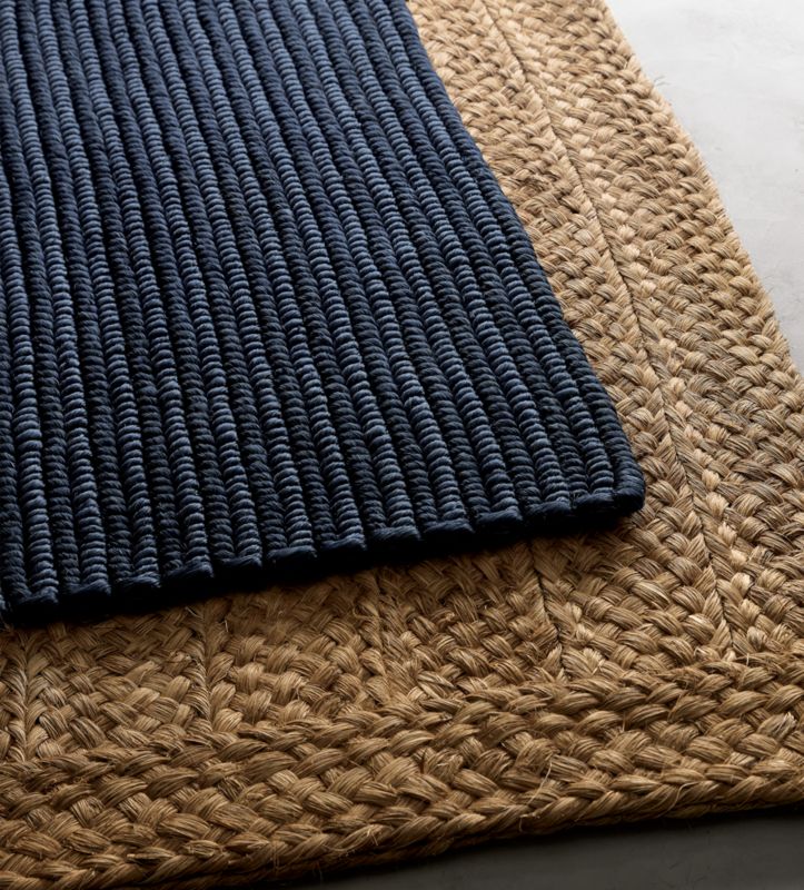 Establish a zen zone with this texture-rich Ross Cassidy design. Made from abaca, a high-quality natural material with soft, glossy fibers and a subtle sheen. Master rug makers dye the abaca a deep navy then hand weave it into an extra thick textural design. Completely unlike traditional fiber rugs, this one is plush and soft with a sophisticated edge. Will literally never go out of style. hea blue abaca rope rug is a CB2 exclusive.