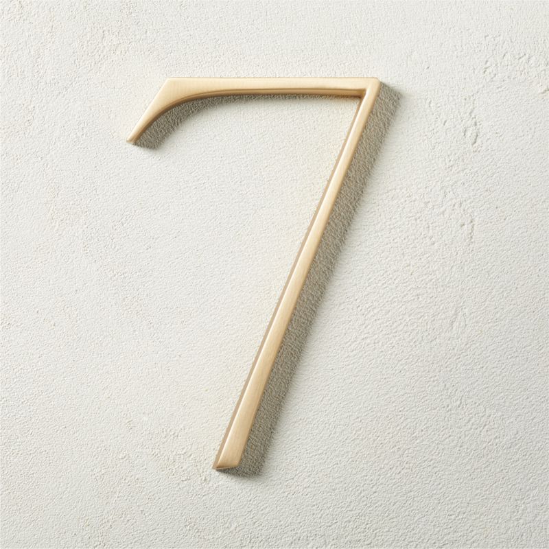 Solid brushed brass house number designed at Lineto, a type foundry based in Switzerland, adds a touch of sophistication in a modern serif font. CB2 exclusive.