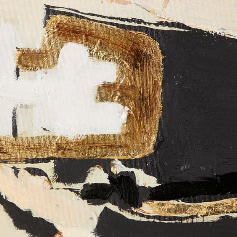 Abstract acrylics and gold leaf embellishments sit atop a paper collage in artist Edward View's "Homer." It's a study on the thick patinas that build up in neglected corners of his city, with paint representing the idea of time and shadows as a medium.