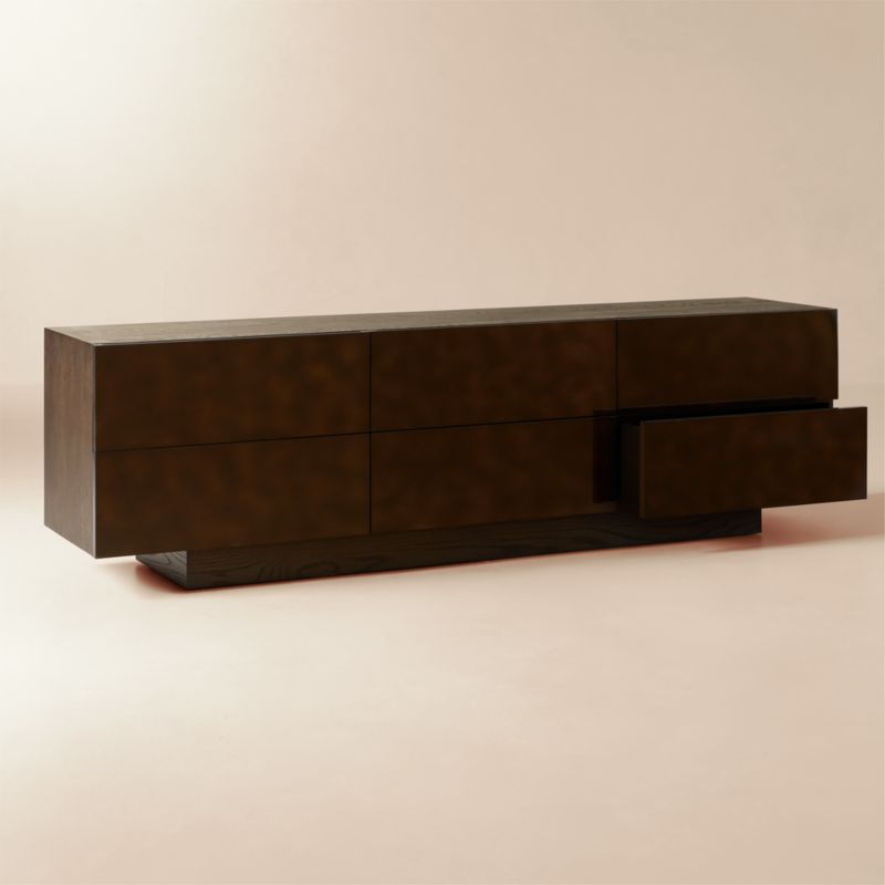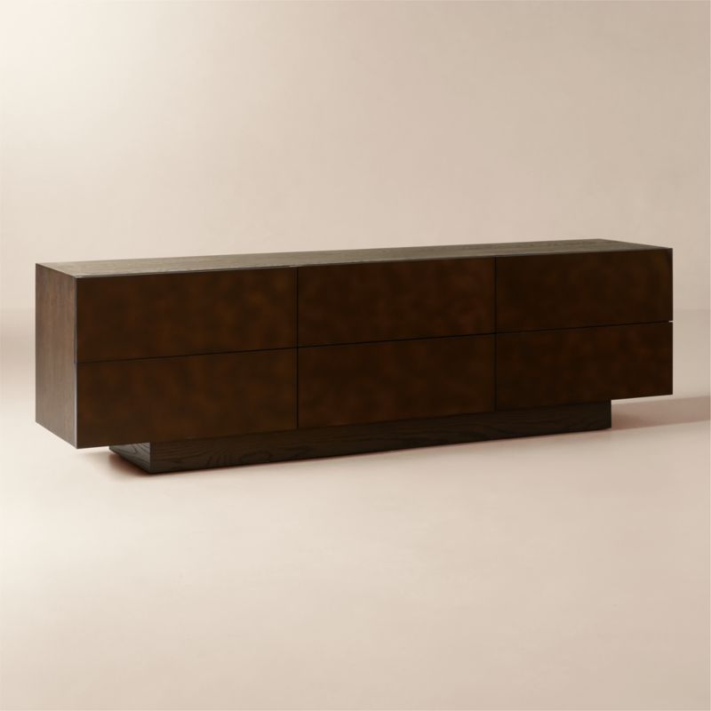 Hudson 6-Drawer Lacquered Dark Brown Wood Dresser