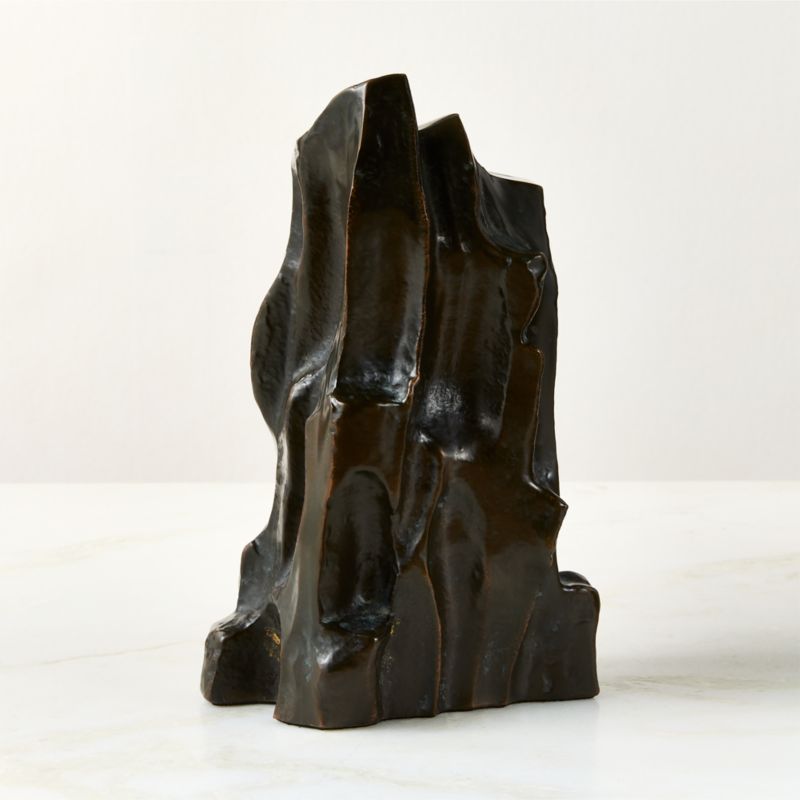 Sand-cast metal sculpture by Los Angeles-based AD100 designer Ross Cassidy is individually crafted using a custom mold. The oxidized copper-plated finish surfaces rich tonal highs and lows. CB2 exclusive.