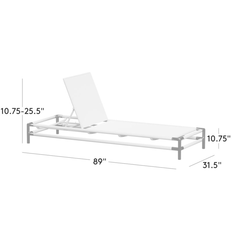 VUUE looks light, airy and modern. Rounded aluminum tube frame is finished with pristine satin white powder coat and polished steel accents that ensure lasting resilience against the elements. Supportive sling seat is fashioned from fade-resistant black Sunbrella ® performance fabric. Five-position adjustment allows for customized comfort whether sitting, relaxing or entertaining. CB2 exclusive.