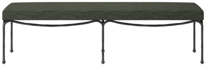 Designed by NYC-based Brett Beldock, bench recalls sculptural art deco designs. The matte black metal base features decorative swags that gracefully drape from one leg to the next. The spare silhouette lends itself to use in the entryway or bedroom. CB2 exclusive.