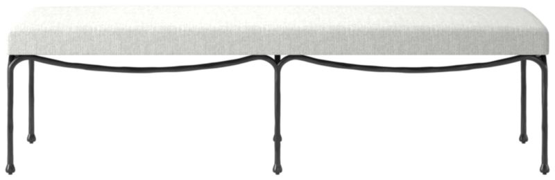 Designed by NYC-based Brett Beldock, bench recalls sculptural art deco designs. The matte black metal base features decorative swags that gracefully drape from one leg to the next. The spare silhouette lends itself to use in the entryway or bedroom. CB2 exclusive.