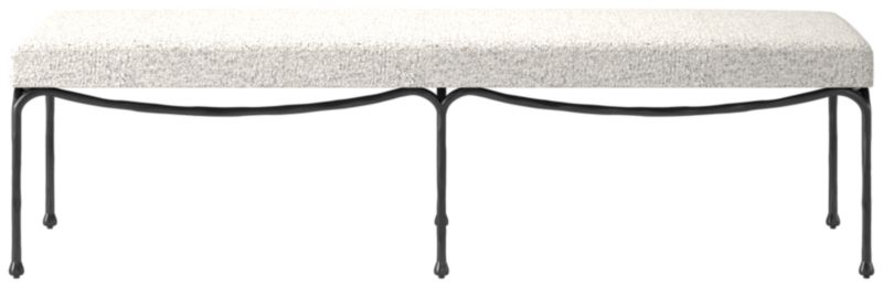 Designed by NYC-based Brett Beldock, bench recalls sculptural art deco designs. The matte black metal base features decorative swags that gracefully drape from one leg to the next. The spare silhouette lends itself to use in the entryway or bedroom. CB2 exclusive.