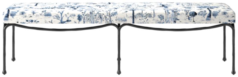 Designed by NYC-based Brett Beldock, bench recalls sculptural art deco designs. The matte black metal base features decorative swags that gracefully drape from one leg to the next. The spare silhouette lends itself to use in the entryway or bedroom. CB2 exclusive.