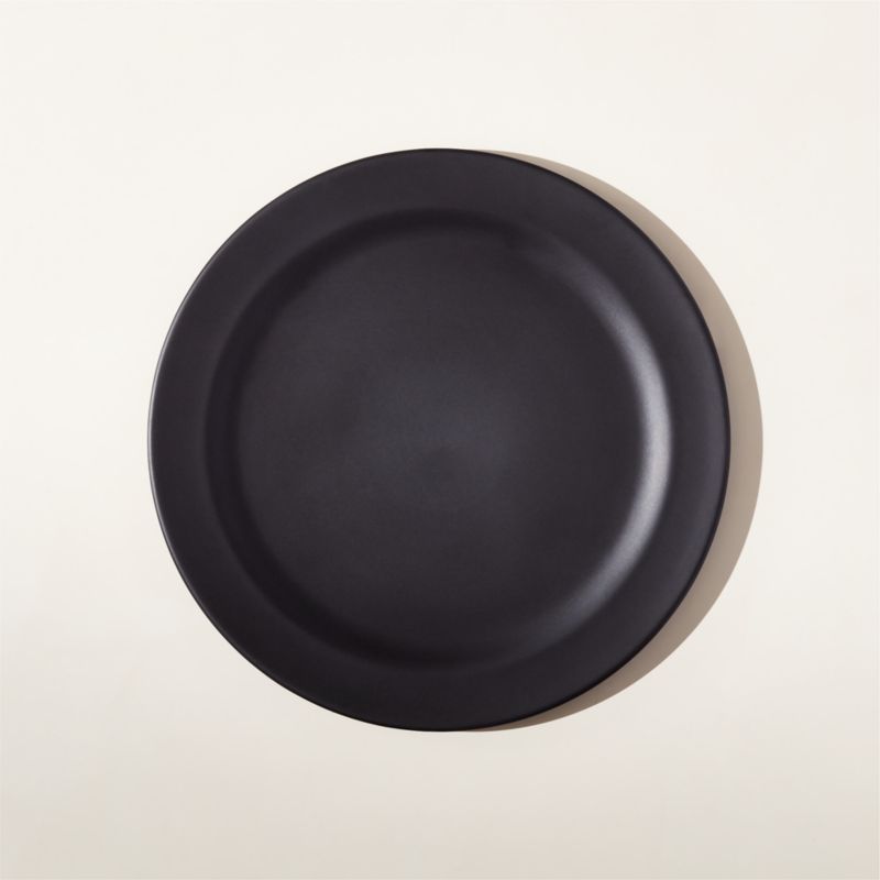 Soft matte black salad plate is modern in both form and materiality. Its clean contours are crafted of a durable mix of cornstarch, melamine and bamboo powder. Pair the break-resistant salad plate with the coordinating dinner plate and serving platter to set an alfresco table. CB2 exclusive.