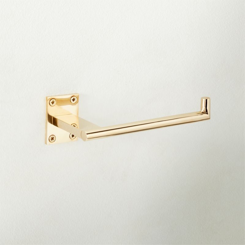 Mermelada Estudio mixes delicate design with solid brass construction in this sleek toilet paper holder. Polished brass is unlacquered for a living finish that will patina beautifully over time. Pair with the Kela knobs, handles, hooks and towel racks for a cohesive look. CB2 exclusive.