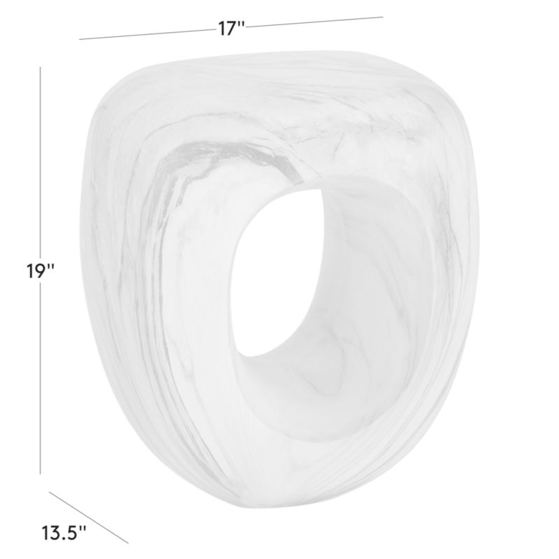 Side table by Evan Jerry of Studio ANANSI looks like a finely sculpted piece of marble. Dipped and removed by hand, the cast resin piece emerges with a marbled design in rich shades of black and grey; no two tables will be alike. Striking with its use of negative space and curves, the table is suitable for indoor and outdoor use. CB2 exclusive.