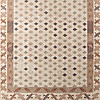Knotted by hand with pure New Zealand wool, vintage-inspired performance area rug frames an allover diamond lattice pattern with graphic geometric borders. A soft, yarn-dyed palette of taupe, ivory and mineral blue highlights the rug's vintage sensibility, enhanced by artisanal washing and subtle abrash for lived-in character. Each rug is crafted using time-honored knotting techniques, all in a performance textile designed for modern living. This handmade process ensures slight variations in color and scale that lend each rug a distinct, heirloom appeal. A medium pile and soft hand make this piece a tactile foundation for a variety of spaces from living rooms to bedrooms. CB2 exclusive.